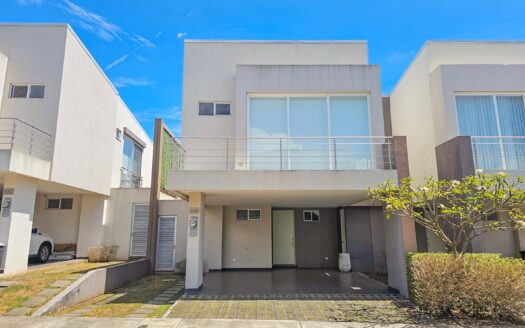 Esta casa posee en el primer nivel parqueo para 3 autos, sala, comedor, cocina, cuarto de lavado, bodega, 1/2 baño de visitas. terraza trasera con jacuzzi, salida lateral. En el segundo nivel encontraras al subir las gradas sala de TV, 2 habitaciones secundarias que comparten 1 baño completo, 1 habitación principal con balcón, walk in closet y baño privado. En un condominio con múltiples …