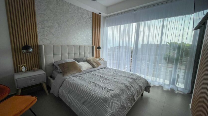 2 dormitorios con clóset 🛁 2 baños con muebles de madera, sobres de mármol y puertas de vidrio 🍽️ Cocina con