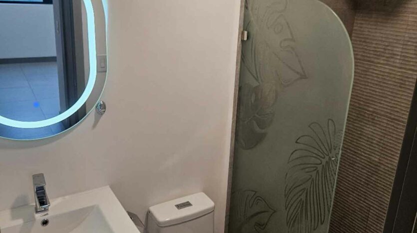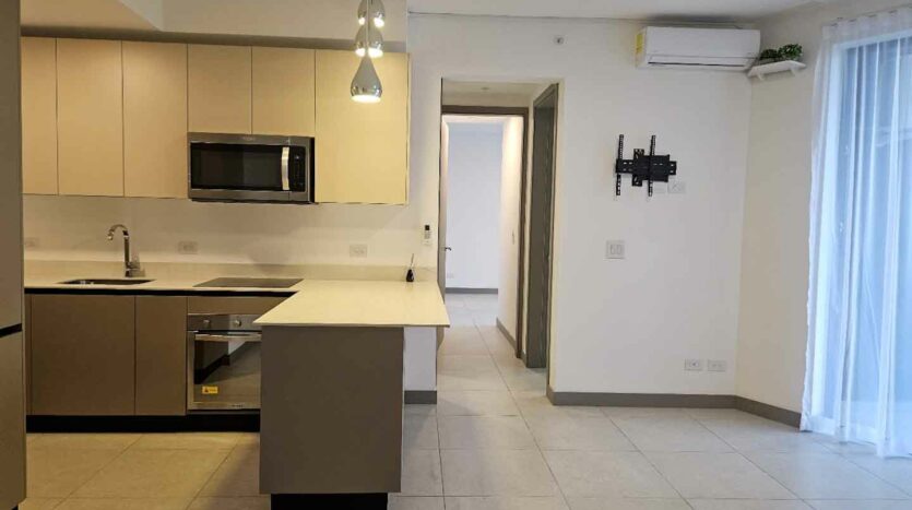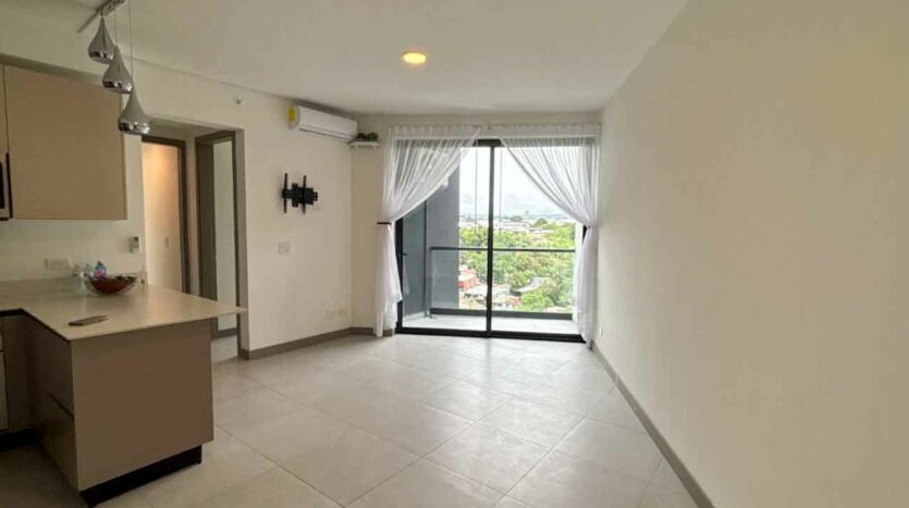 • 2 habitaciones (principal con A/C, walk-in closet y balcón; secundaria con abanico de techo y clóset empotrado).