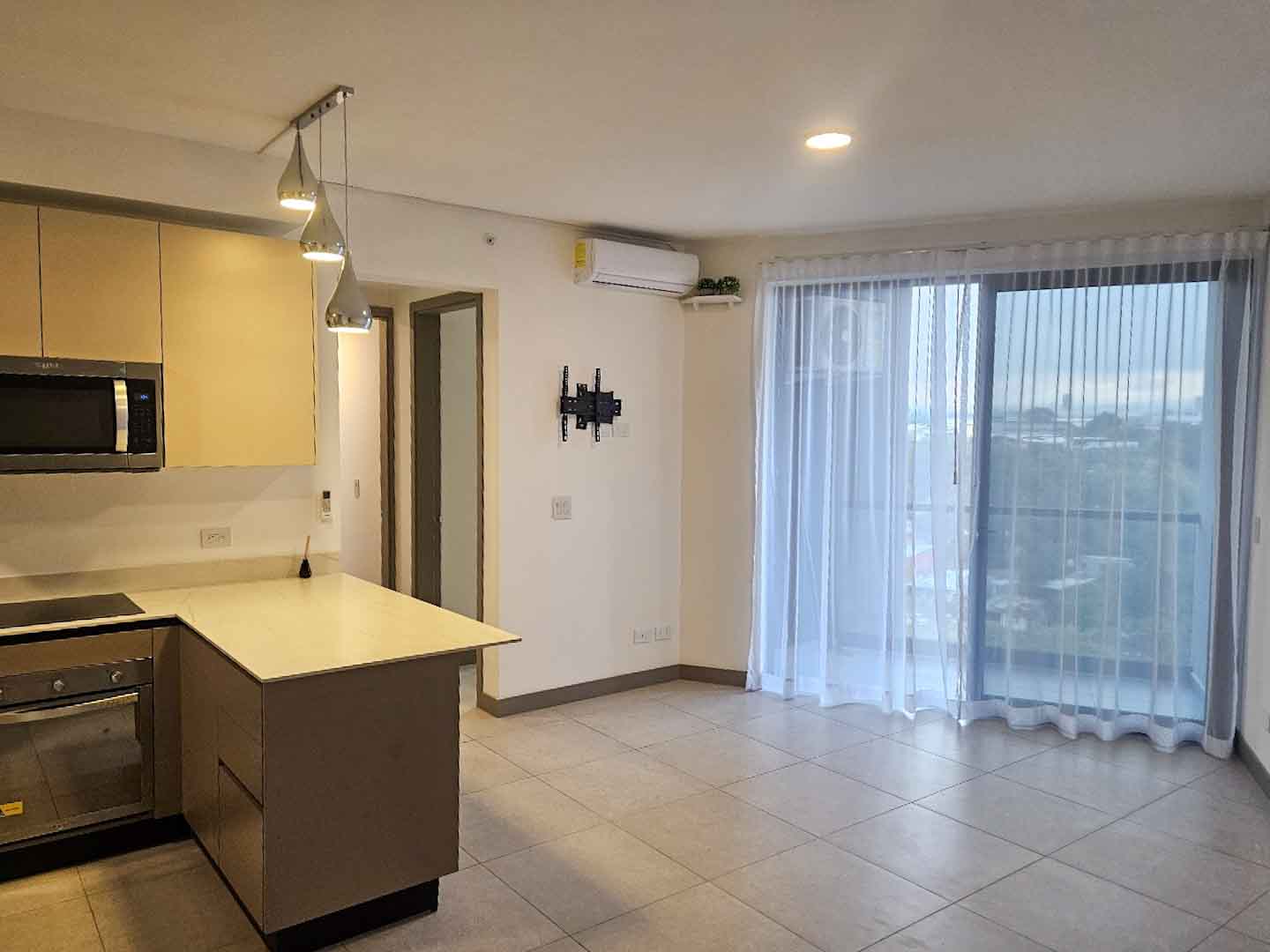 • Sala con A/C y ventanales de piso a techo.