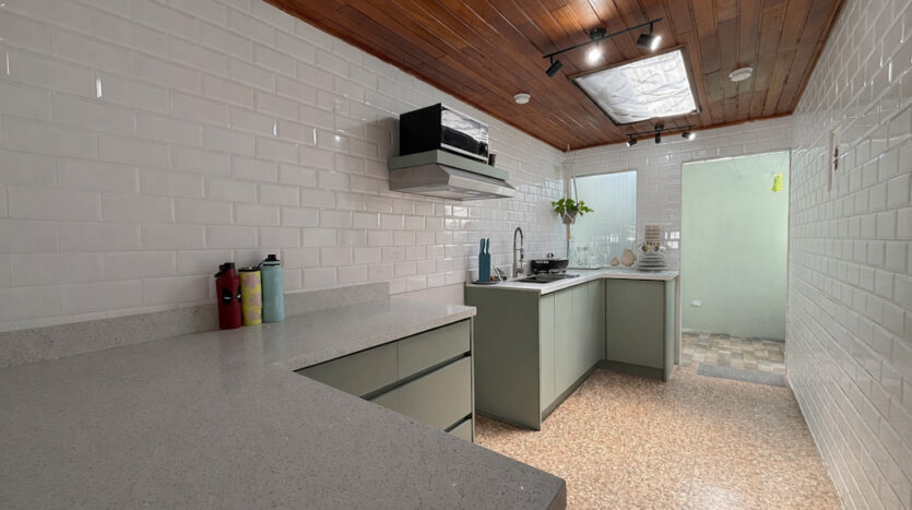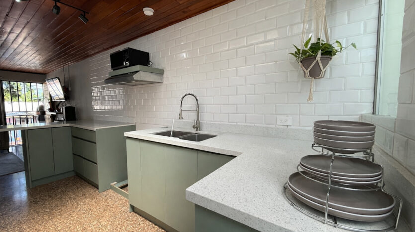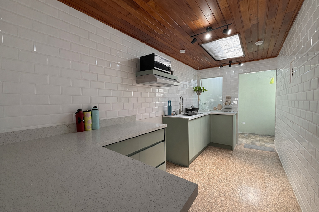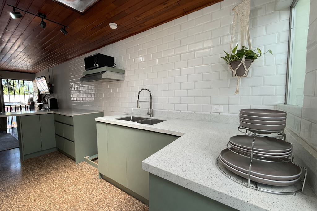 - Cocina con sobre y desayunador de cuarzo