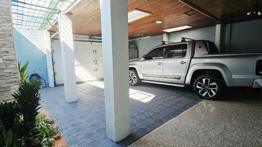 • Cochera techada para 2 vehículos con portón eléctrico (opción de ampliar parqueo)