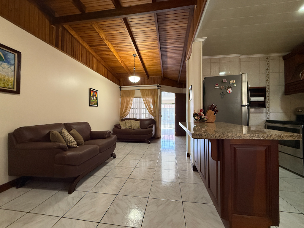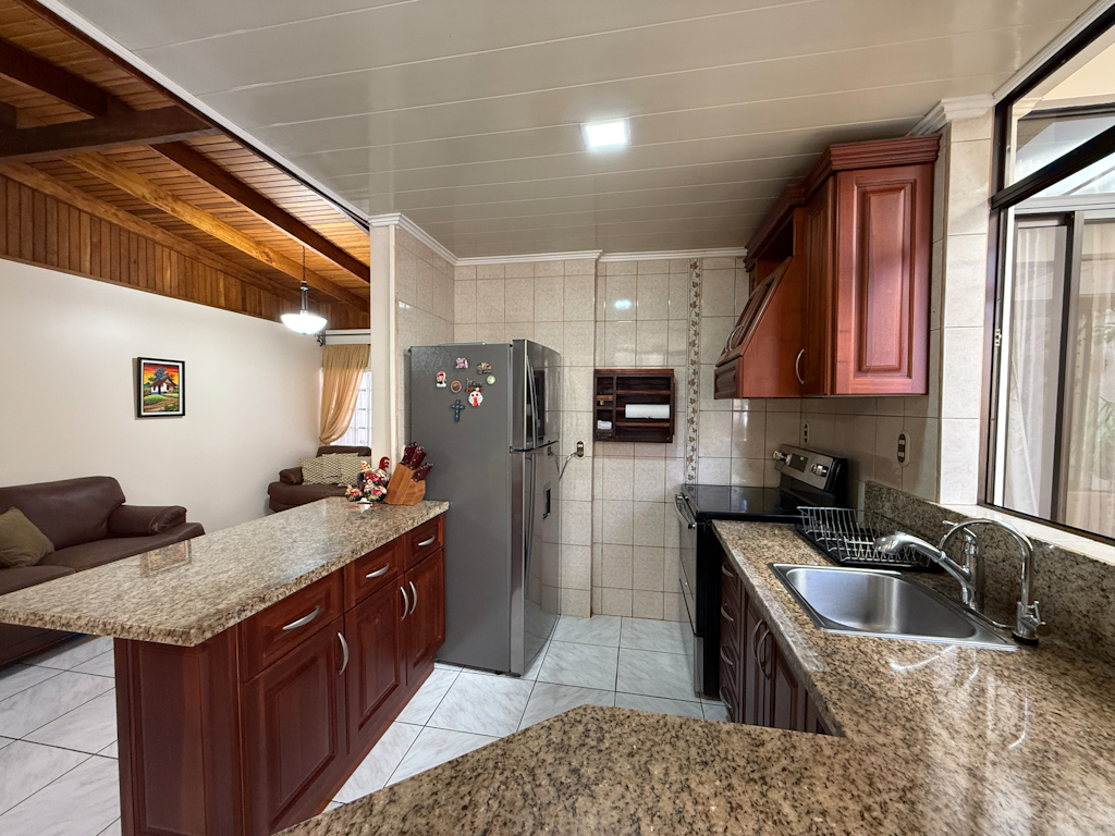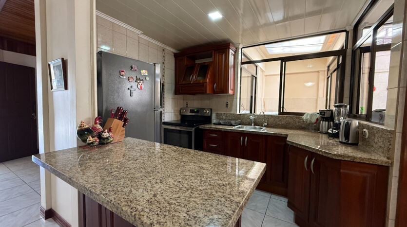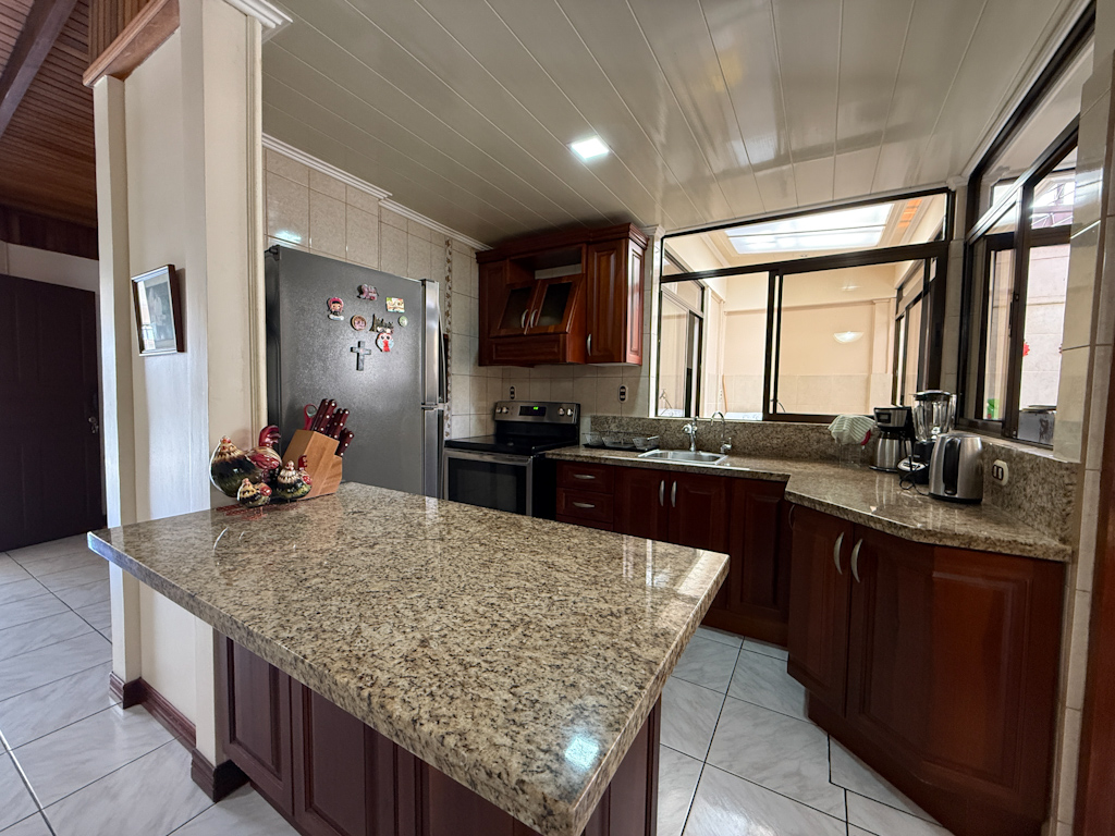 Cocina con sobre y desayunador de granito