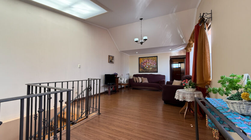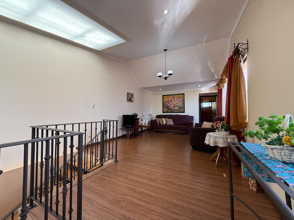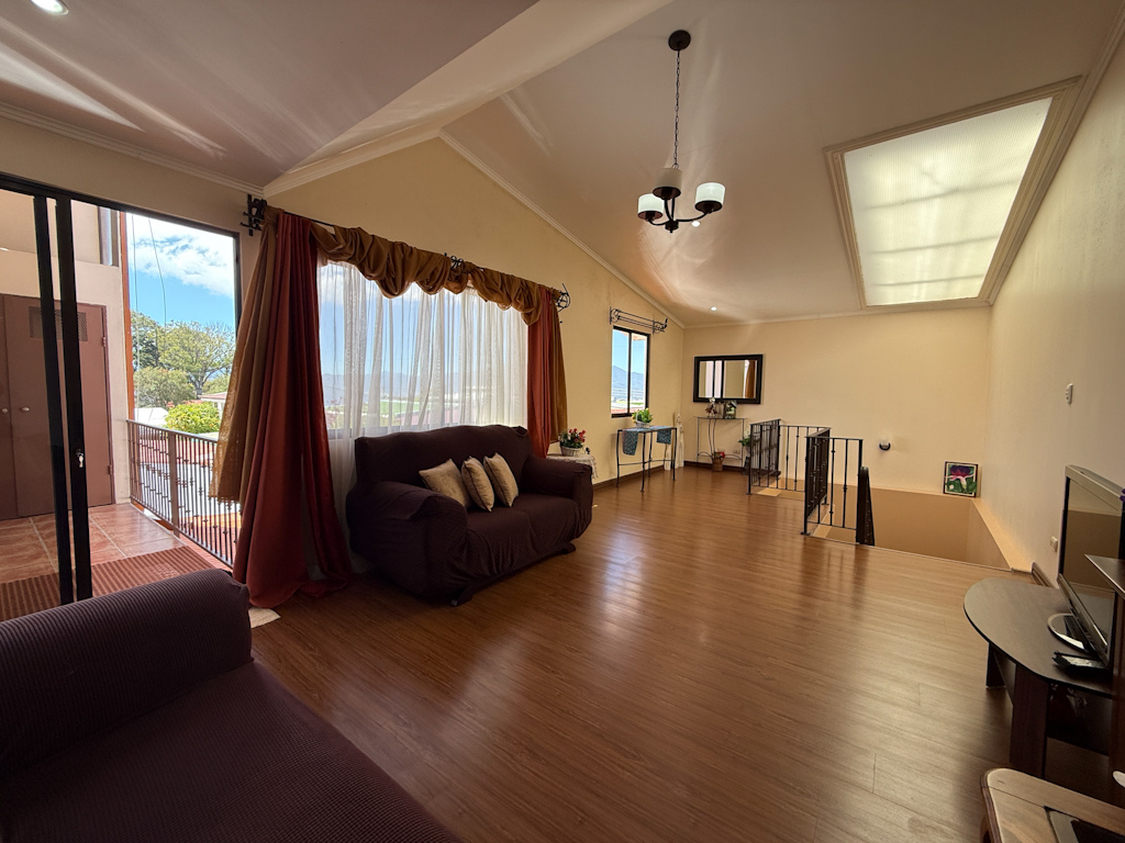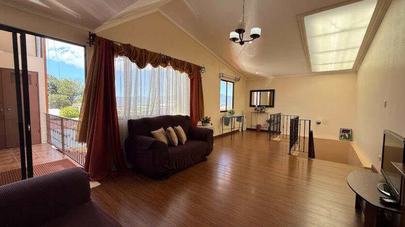 Amplio espacio flexible de sala de TV y oficina con balcón