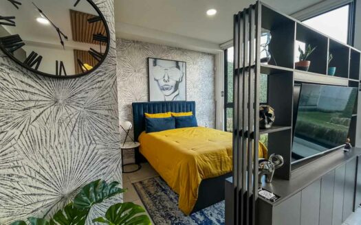 - Primer nivel: Apartamento tipo estudio con un amplio dormitorio y baño.