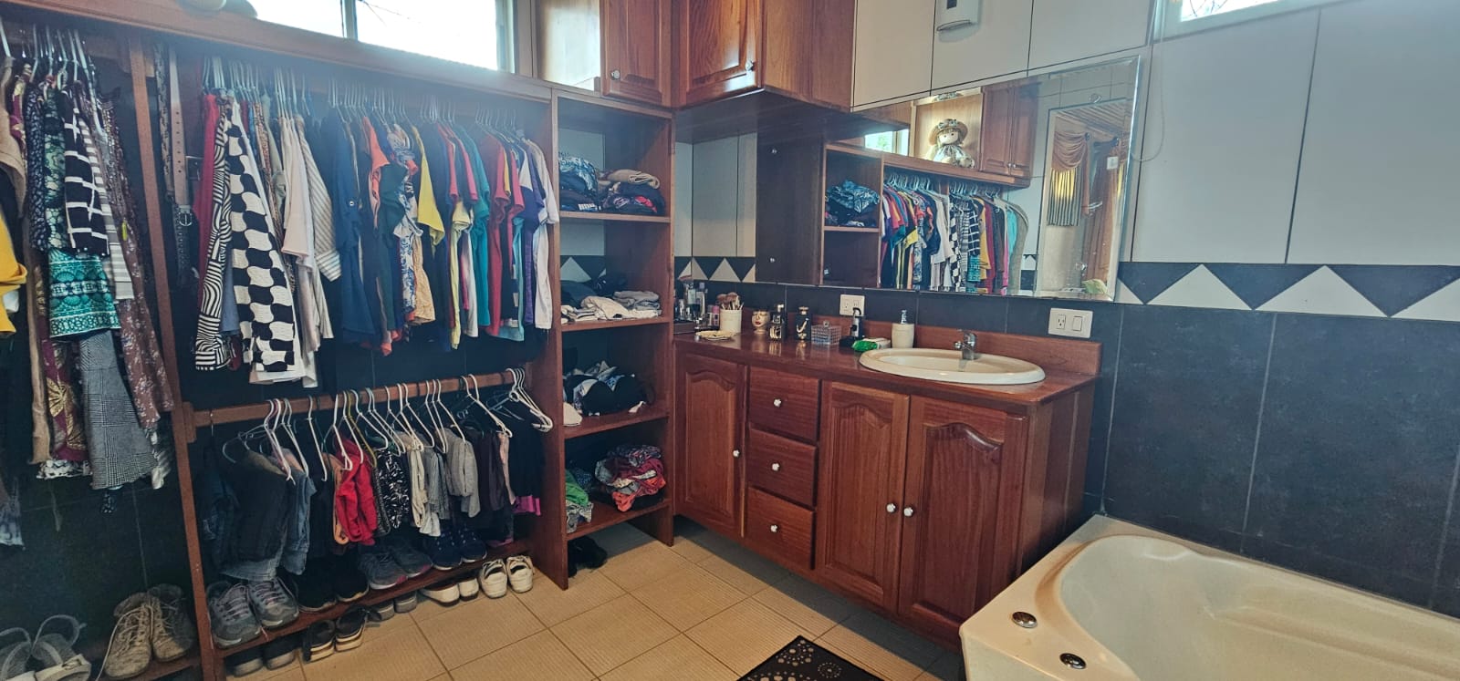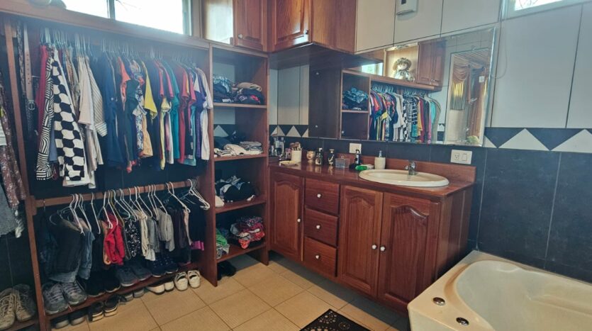 Dormitorio principal con walk-in closet y baño con tina