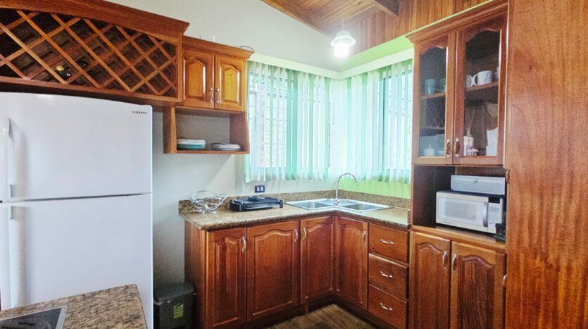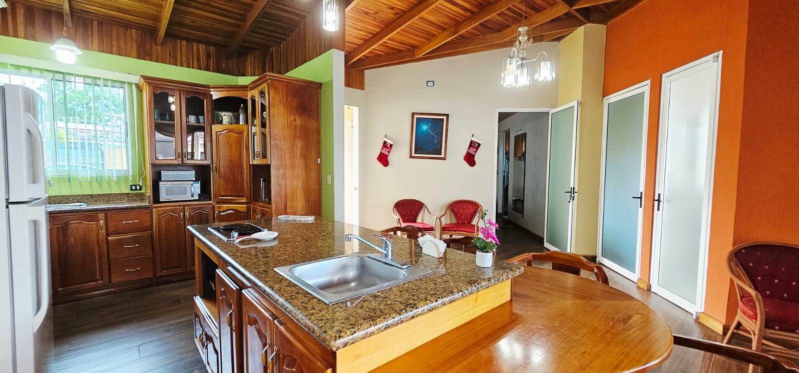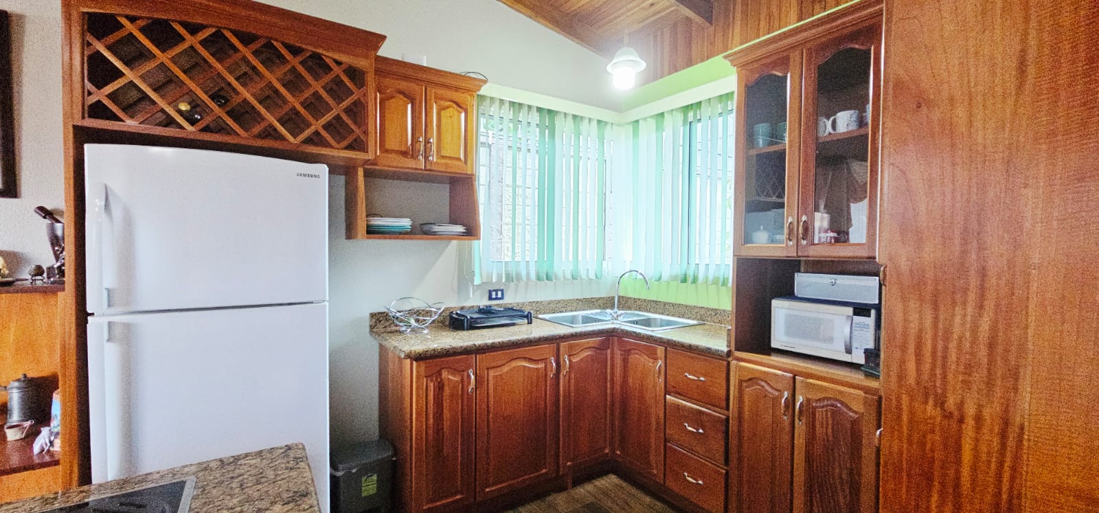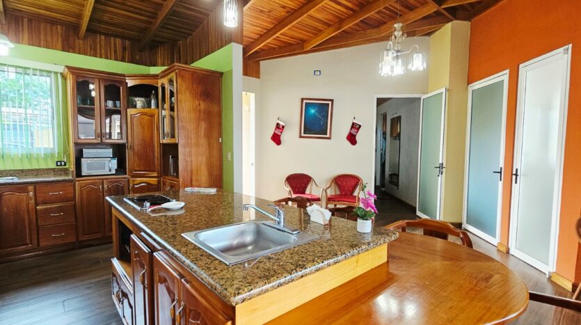 Cocina con plantilla empotrada, desayunador y mueble en madera de cedro