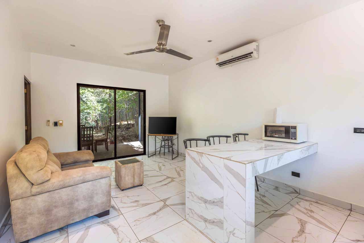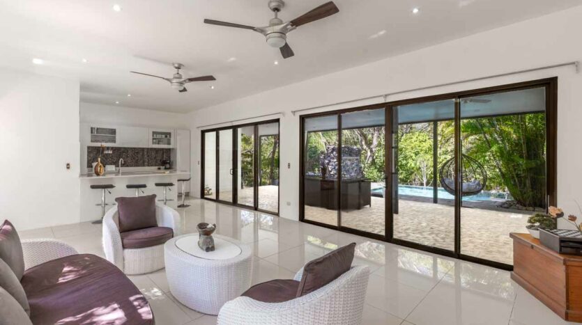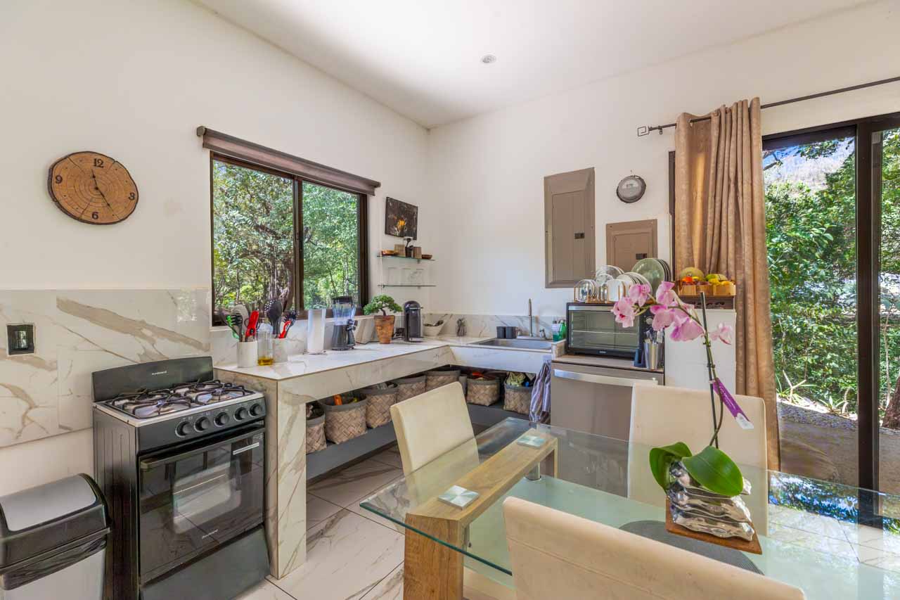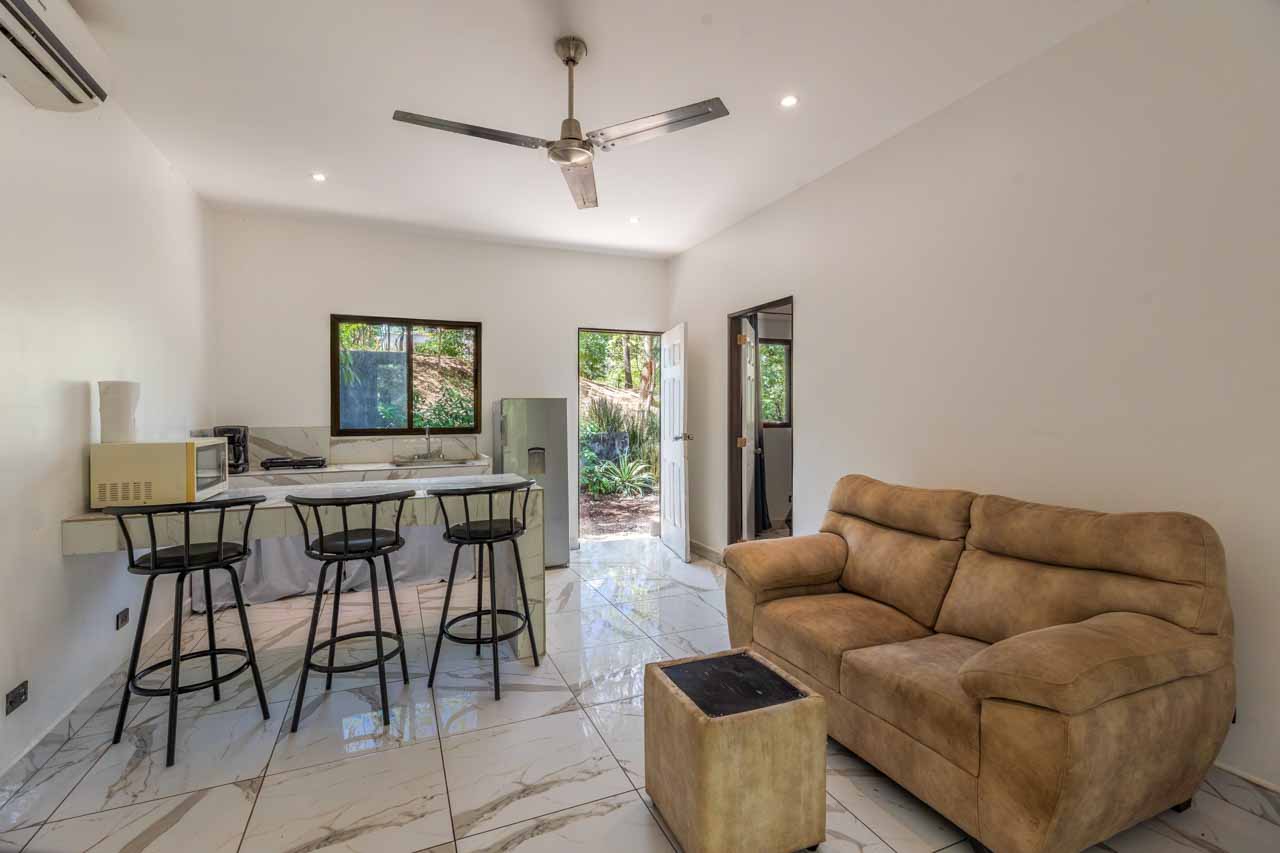 La vida aquí transcurre acompañada de monos, aves, iguanas y fauna local, reforzando la experiencia de vivir en contacto directo con el entorno natural. A pocos minutos de Villarreal, Tamarindo y playas reconocidas como Langosta y Avellanas, la ubicación equilibra privacidad con cercanía a servicios, gastronomía y zonas turísticas.