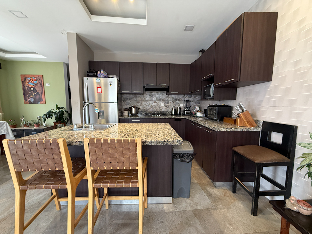 - Cocina con sobre e isla de granito