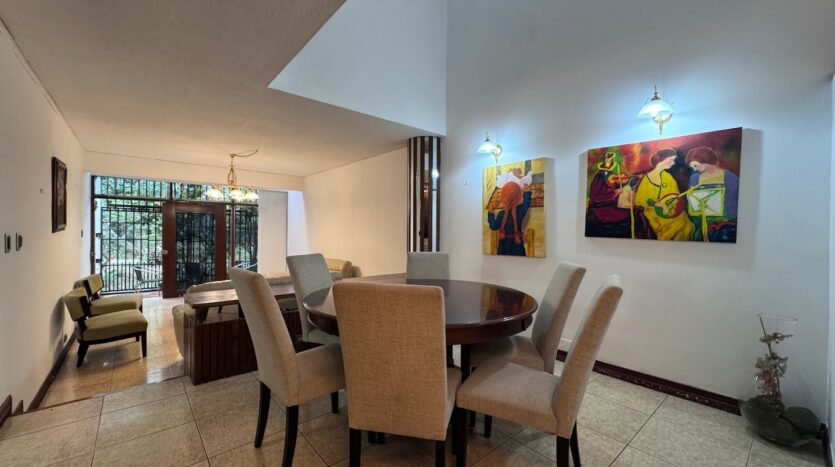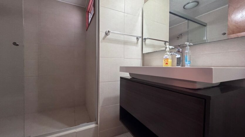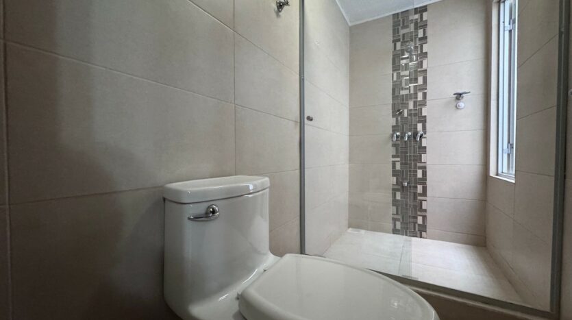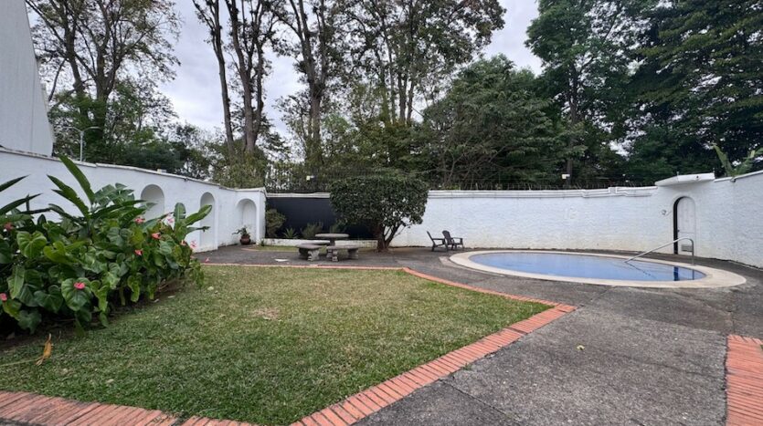 El condominio cuenta con piscina temperada y zona verde, pagando una cuota condominal del 100 mil colones.
