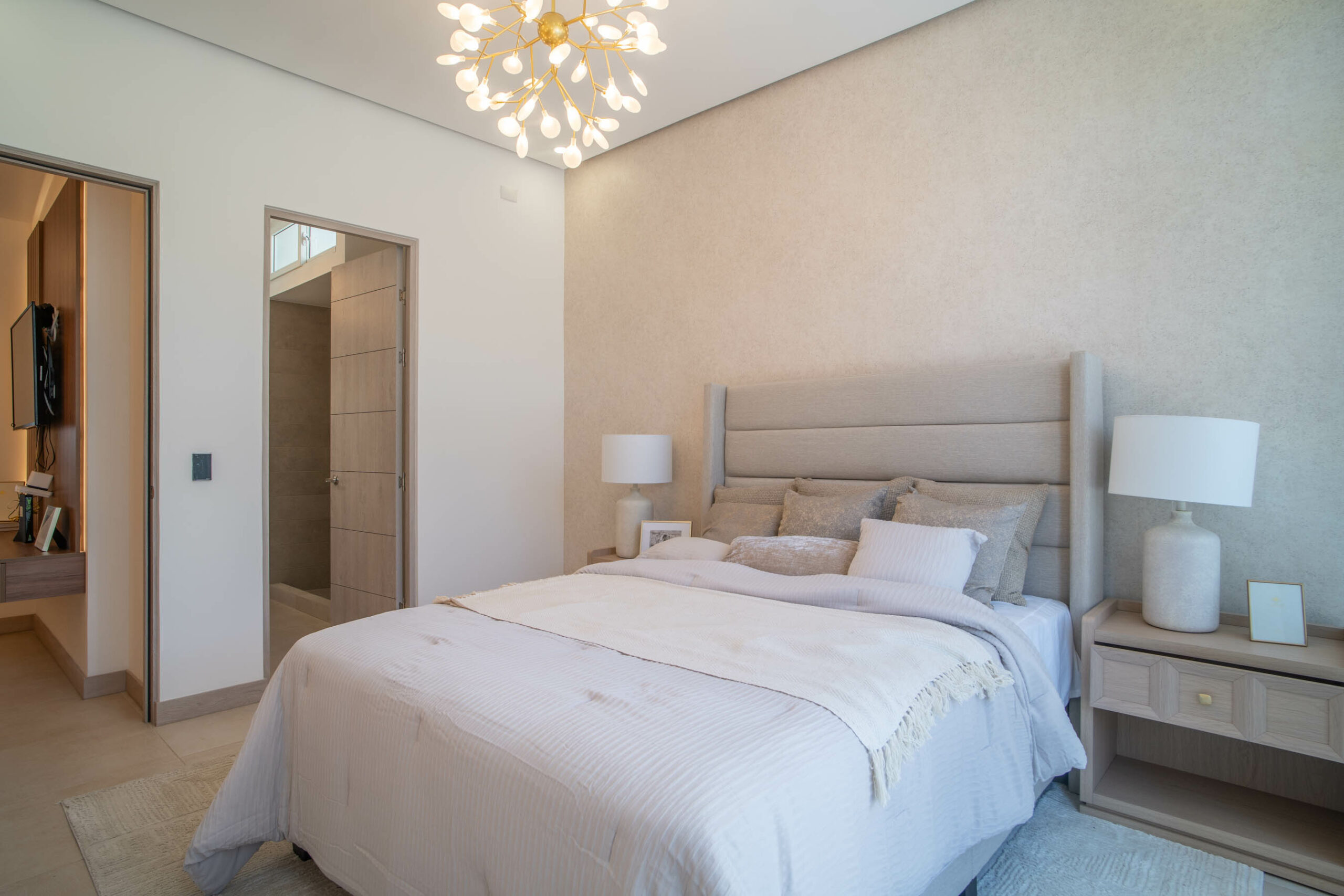 Sala de TV – 2 hab. secundarias – 1 baño completo compartido – 1 hab. principal (con walk in closet + balcón) y baño privado