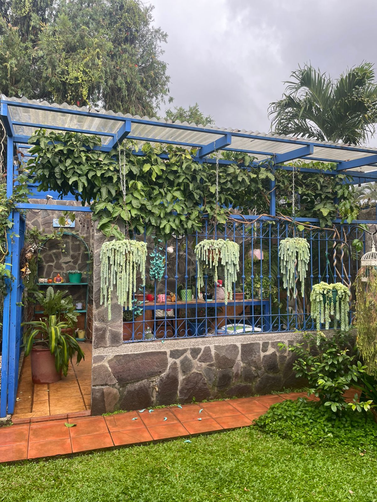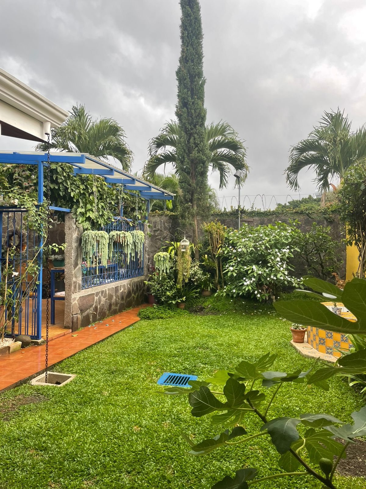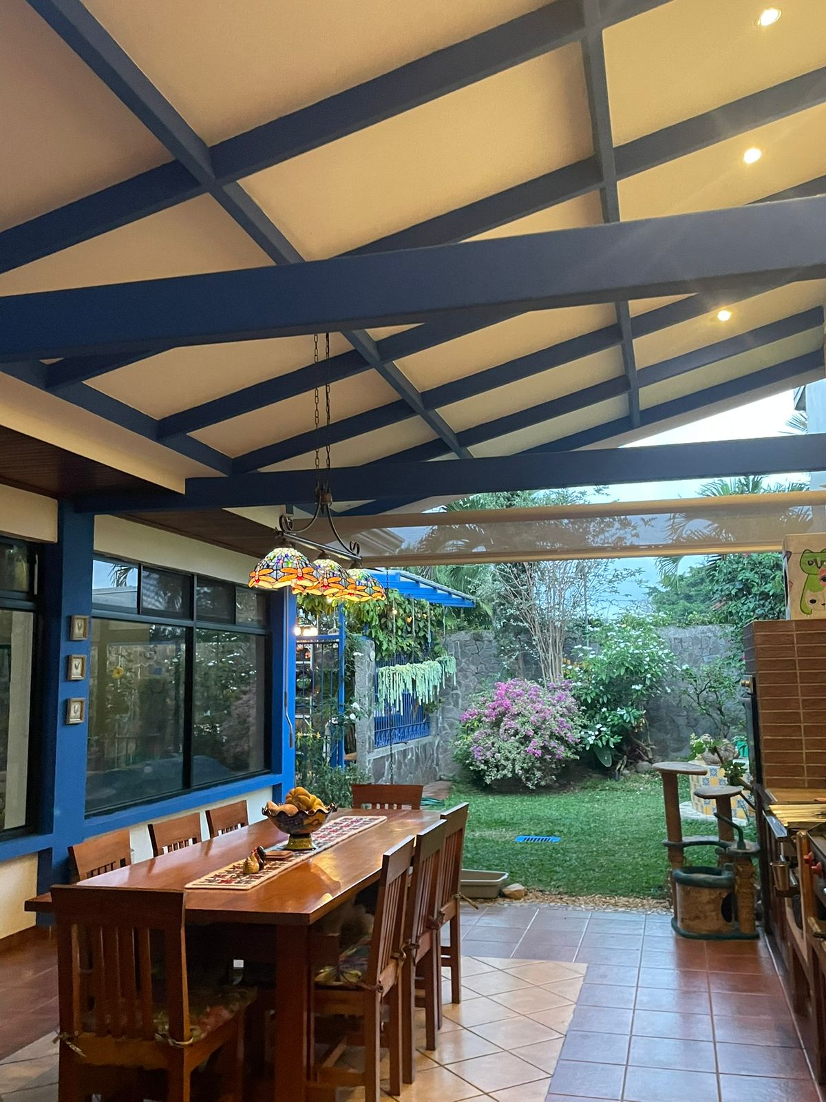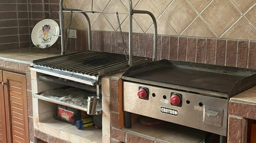 • Terraza con parrilla, medio baño y salida al jardín trasero con fuente e invernadero