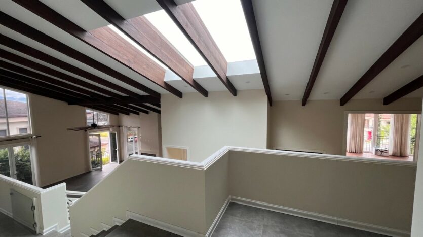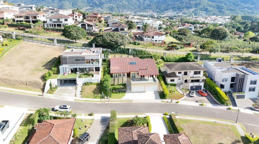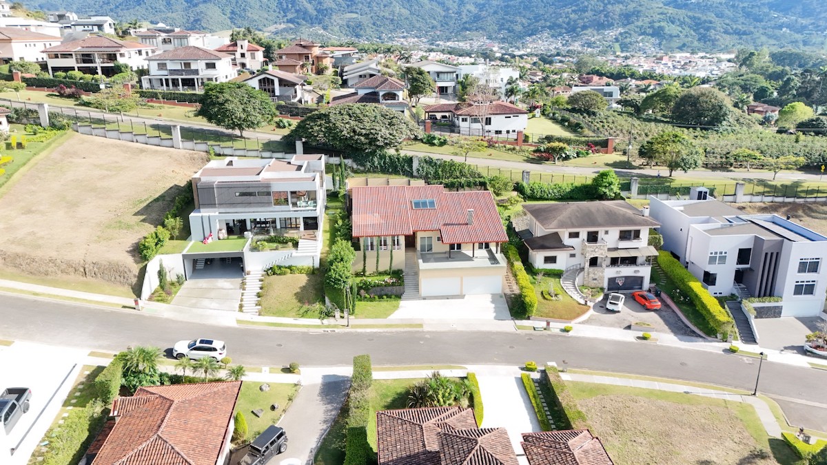 Ubicada en el exclusivo condominio Colinas de Montealegre, en el este de San José, esta impresionante casa ofrece una combinación perfecta de elegancia, comodidad y vistas panorámicas de la ciudad. Con un diseño arquitectónico que destaca por su doble altura en la sala y cielos artesanados y una chimenea, la propiedad crea un ambiente acogedor y sofisticado.