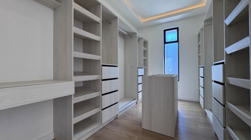 Habitación principal ofrece doble walk-in clóset y baño completo.