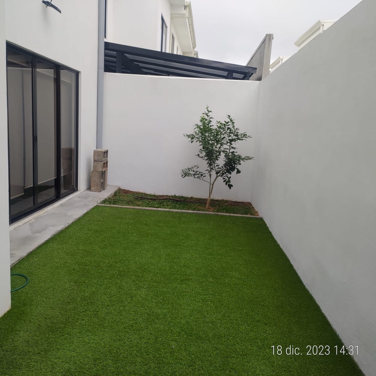 • Patio con zacate artificial.
