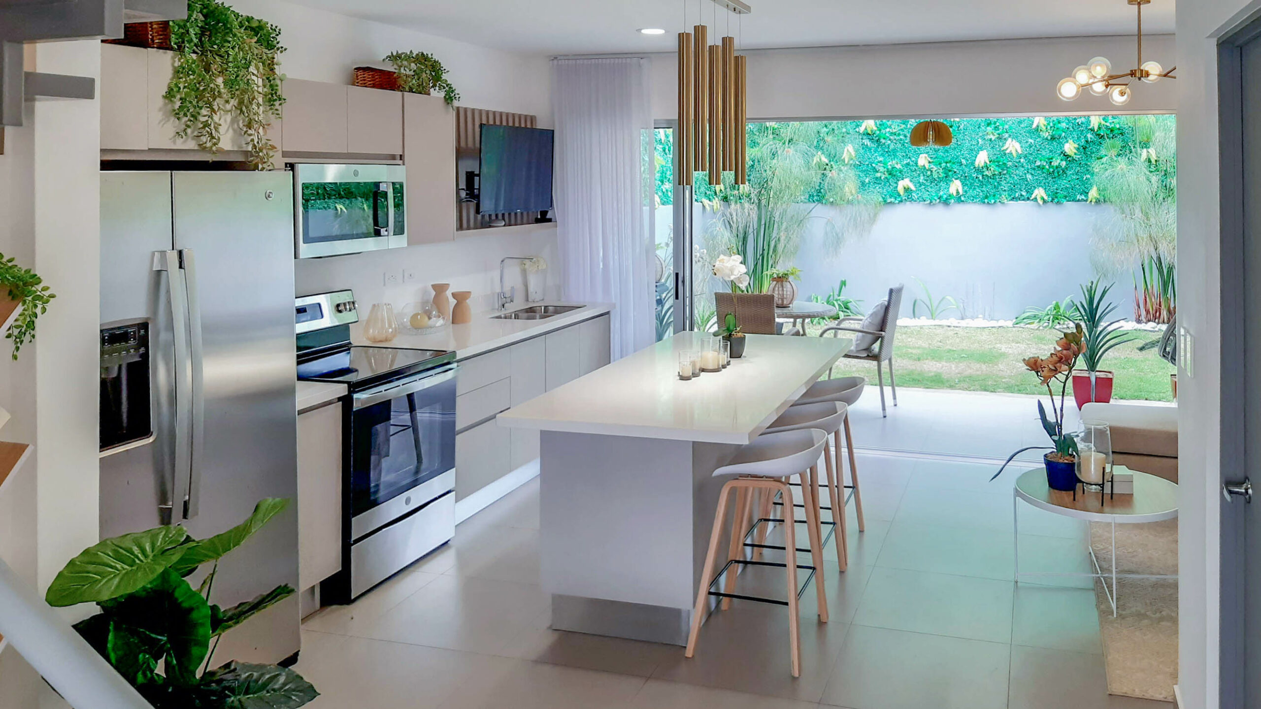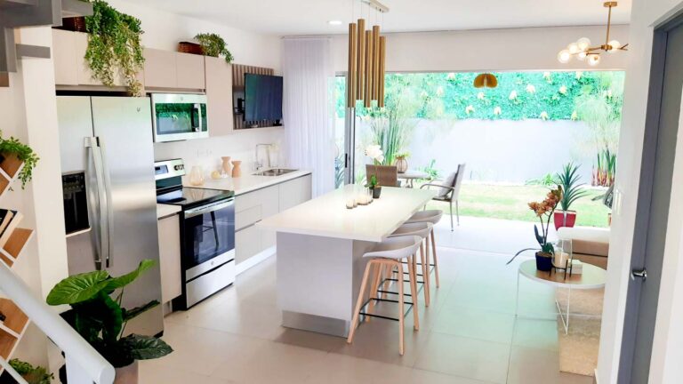 Sala – Comedor – Cocina – Terraza + jardín – 1/2 baño de visitas – cuarto de lavado – Parqueo para 2 carros